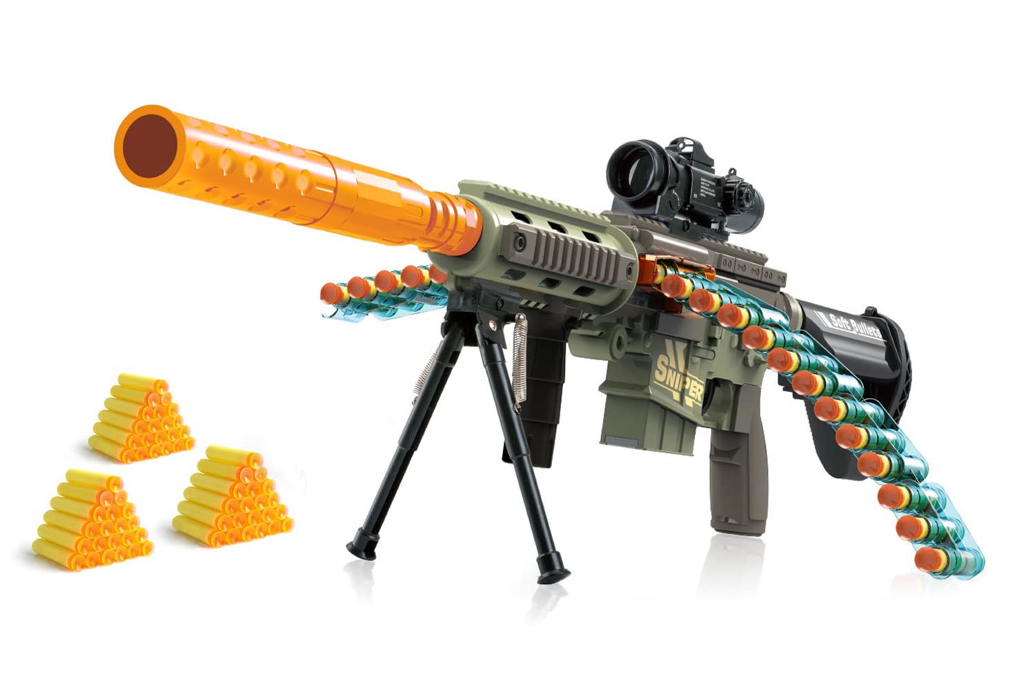 Amazon Com Large Automatic Toy Gun For Boys Big Action Blaster Sniper Bullets Toys For Boy Kids Age 6 12 2 Modes Diy Toy Foam Blasters Guns 24 Bursts Ejecting Drum Magazine