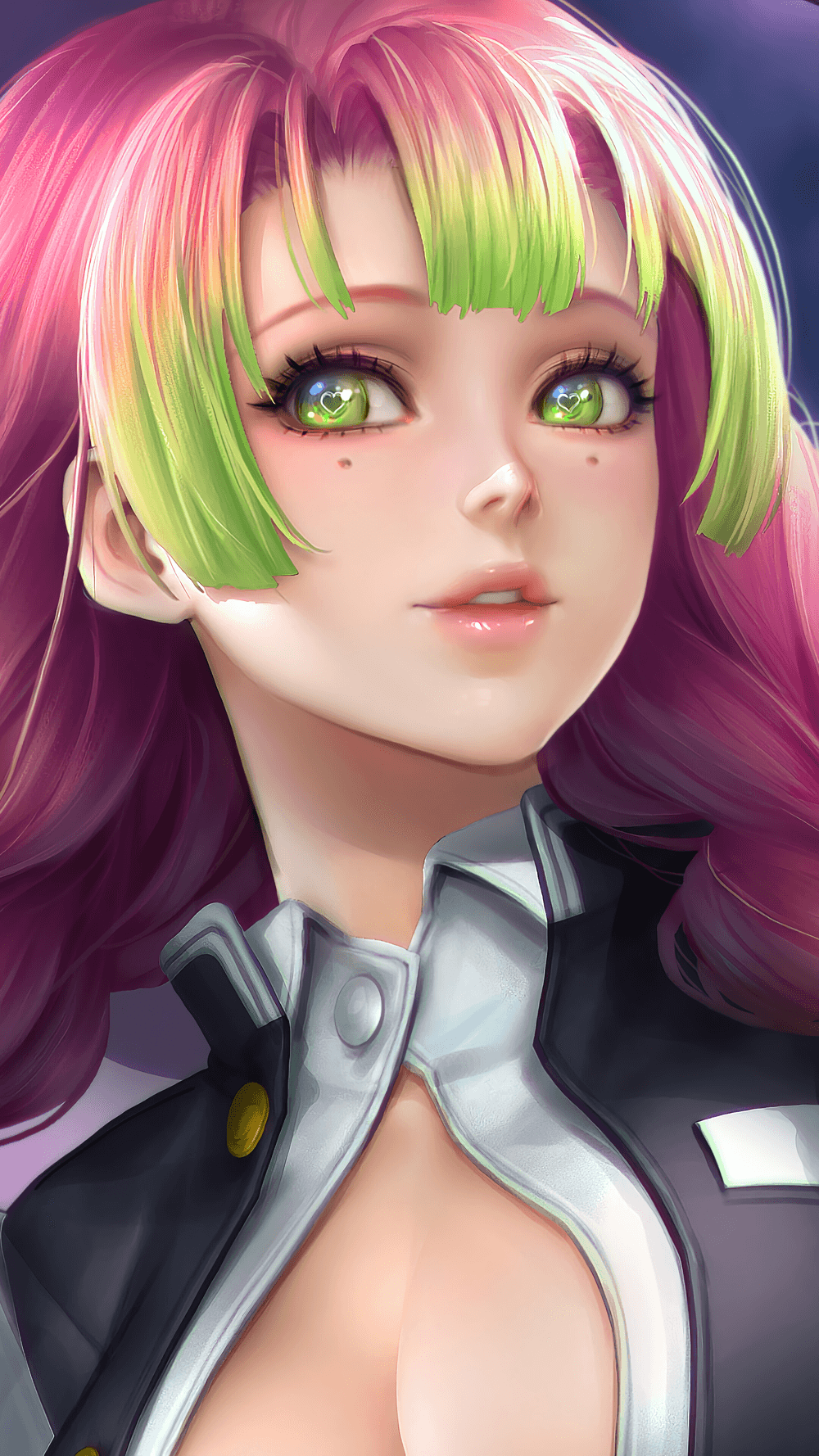 1211966 Fan Art Black Gloves Big Boobs Cleavage Long Hair Kimetsu No Yaiba Women With Swords Green Eyes Pink Hair Multi Colored Hair Mitsuri Kanroji Vertical Open Shirt Katana Anime Girls 2d Digital
